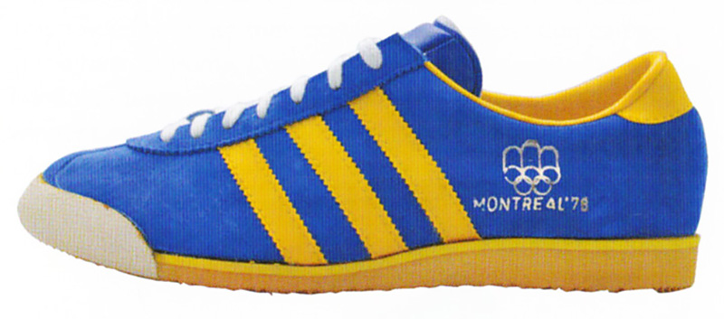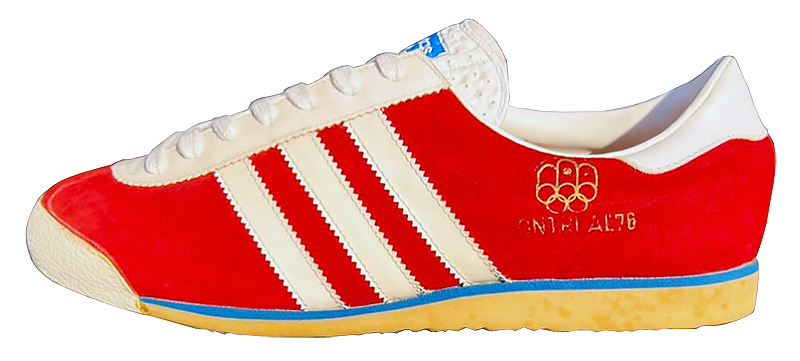 1976年にカナダで製作されたモントリオールオリンピック向けのシューズです。この年からカナダでの靴生産が開始され、地元オリンピック向けに生産されました。このためカナダの選手や関係者はadidasのシューズを使用し、聖火ランナーの男女(男性はスタンスミスで女性はモンテカルロ)もadidasを履いていました。